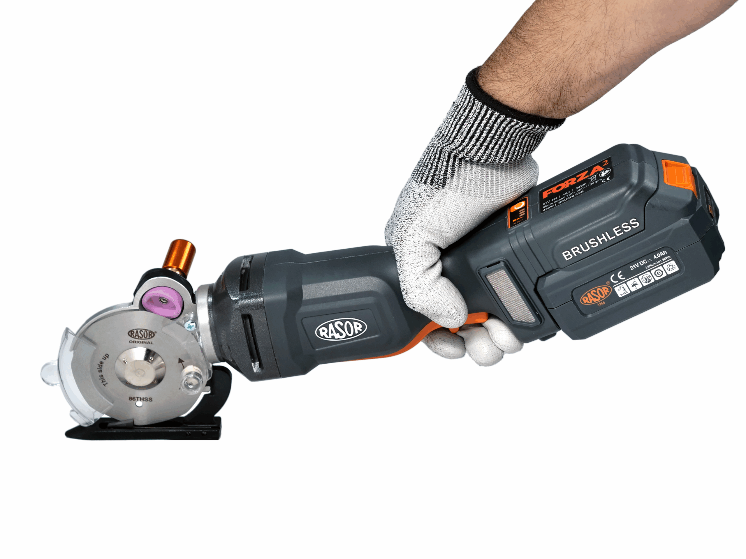 FORZA2 Rasor nóż tarczowy akumulatorowy ręczny 450 W, ostrze 86 mm