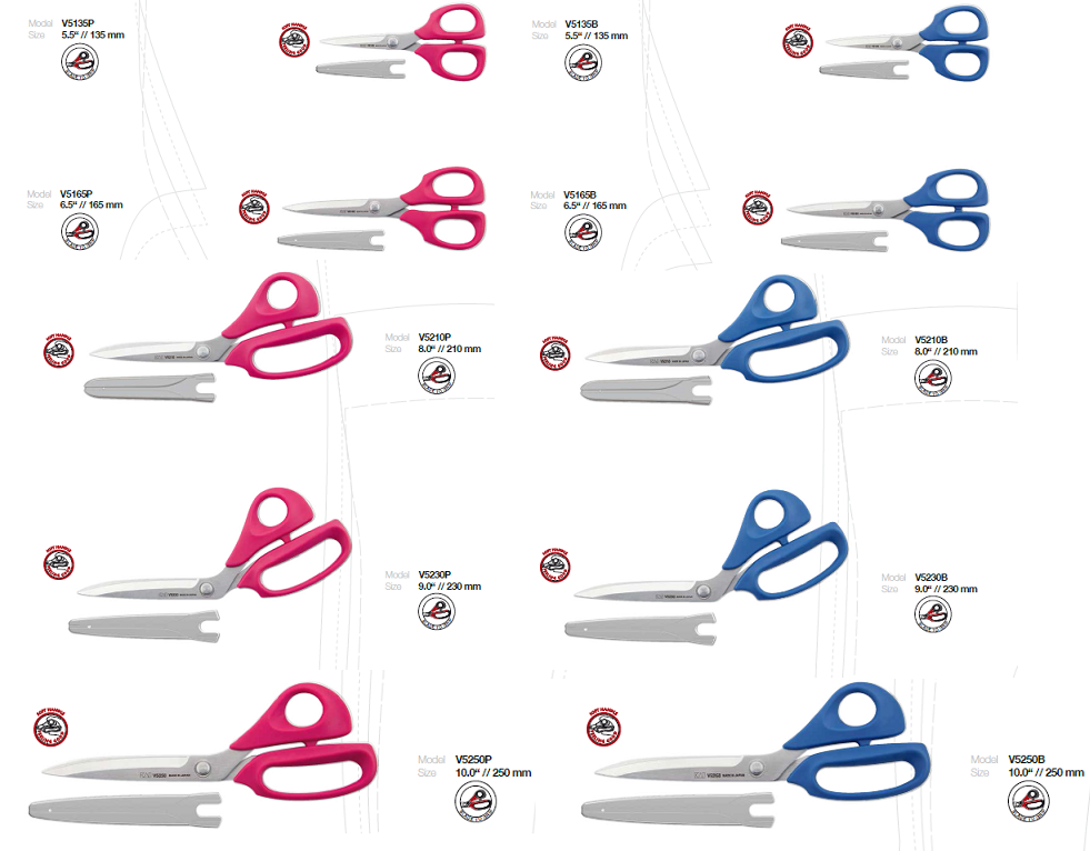 Nowy model V5000 dostępny jest w dwóch kolorach uchwytów niebieskim i różowym oraz w pięciu rozmiarach: