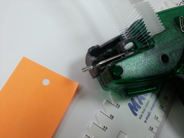 - Specjalnie przystosowany do etykiet z otworem.
