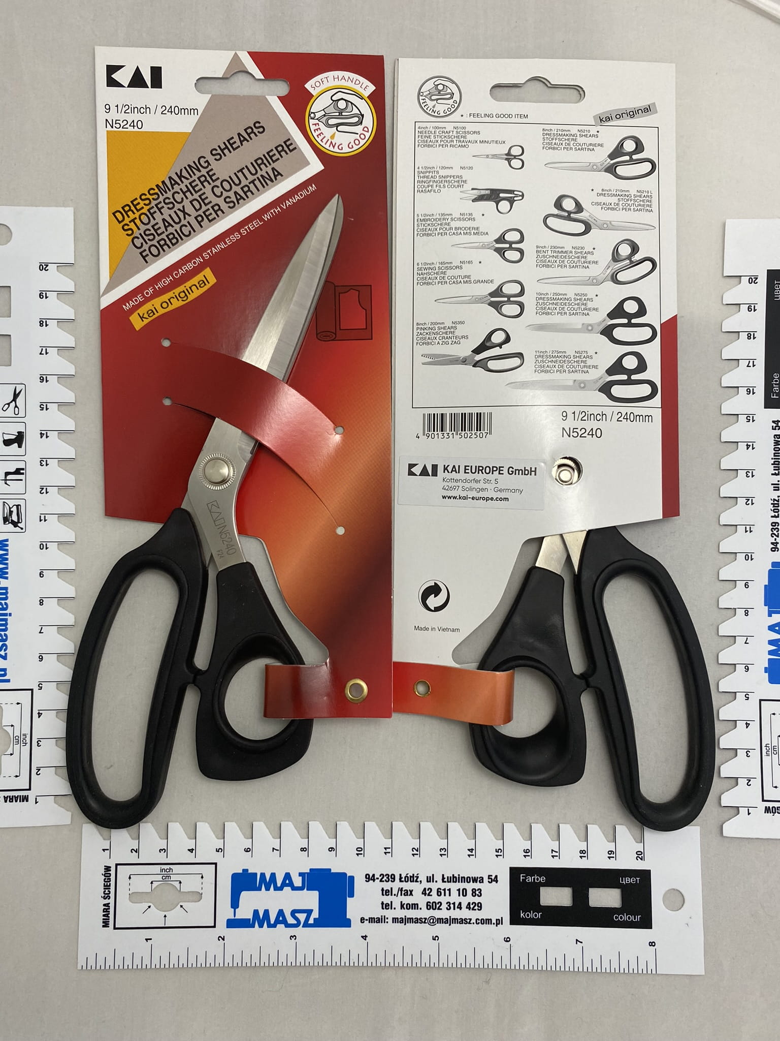 Nożyczki krawiecke Japońskie KAI N5240 9,5" (24,1 cm) 56 HRC nożyce seria N5000 z elastycznymi uchwytami