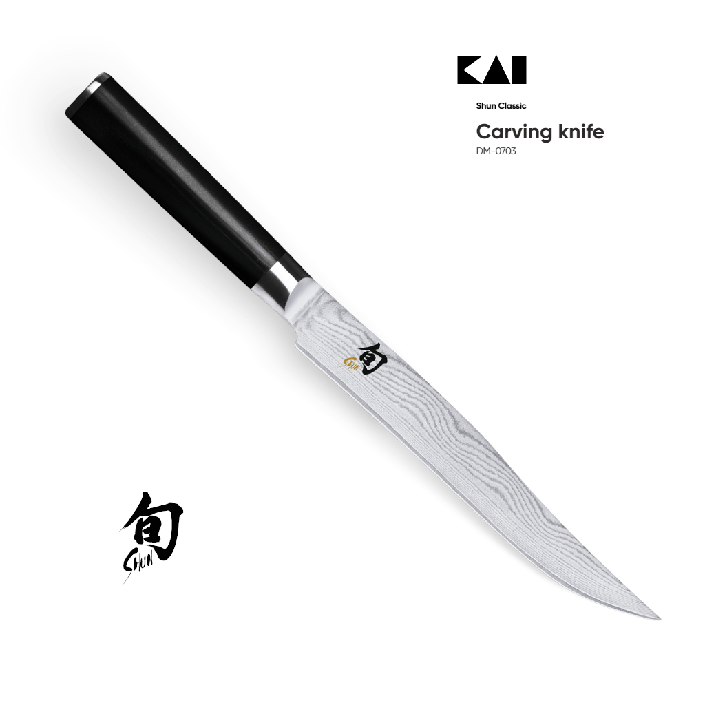 Charakterystyczną cechą noży Shun są widoczne na nich warstwy przypominające linie papilarne i podobnie jak one są tak samo niepowtarzalne. Noże firmy KAI są niezwykle ostre i znakomicie wyważone, tworzone w oparciu o tradycję produkcji mieczy samurajskich. Są idealne do precyzyjnego cięcia nawet najcieńszych plastrów i tworzenia fantazyjnych dekoracji.