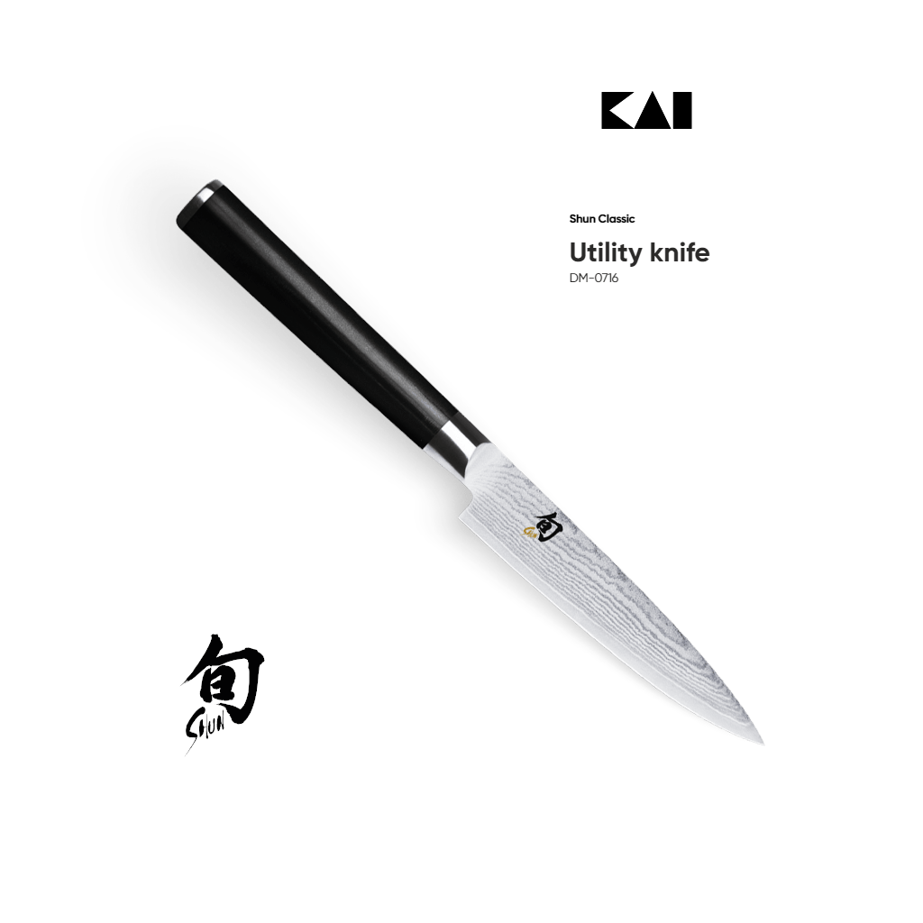 Charakterystyczną cechą noży Shun są widoczne na nich warstwy przypominające linie papilarne i podobnie jak one są tak samo niepowtarzalne. Noże firmy KAI są niezwykle ostre i znakomicie wyważone, tworzone w oparciu o tradycję produkcji mieczy samurajskich. Są idealne do precyzyjnego cięcia nawet najcieńszych plastrów i tworzenia fantazyjnych dekoracji.