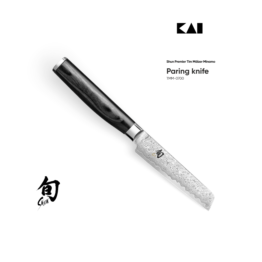 Shun Premier Mälzer Minamo TMM-0700 KAI JAPOŃSKI NÓŻ DO OBIERANIA 9cm ZE STALI DAMASCEŃSKIEJ