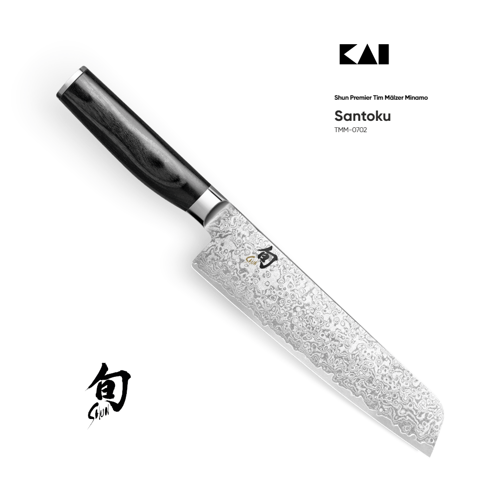 Shun Premier Mälzer Minamo TMM-0702 KAI JAPOŃSKI NÓŻ SANTOKU 18cm ZE STALI DAMASCEŃSKIEJ